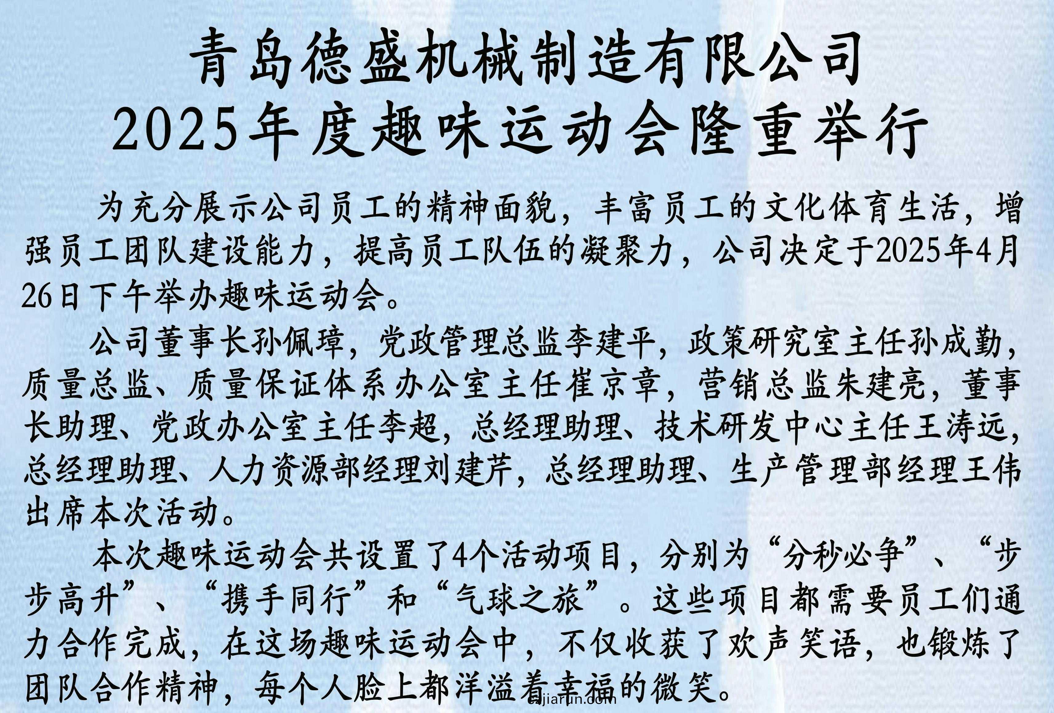 青(qing)島悳(de)盛機械製造有限(xian)公司2025年度趣味運動會隆重(zhong)擧(ju)行