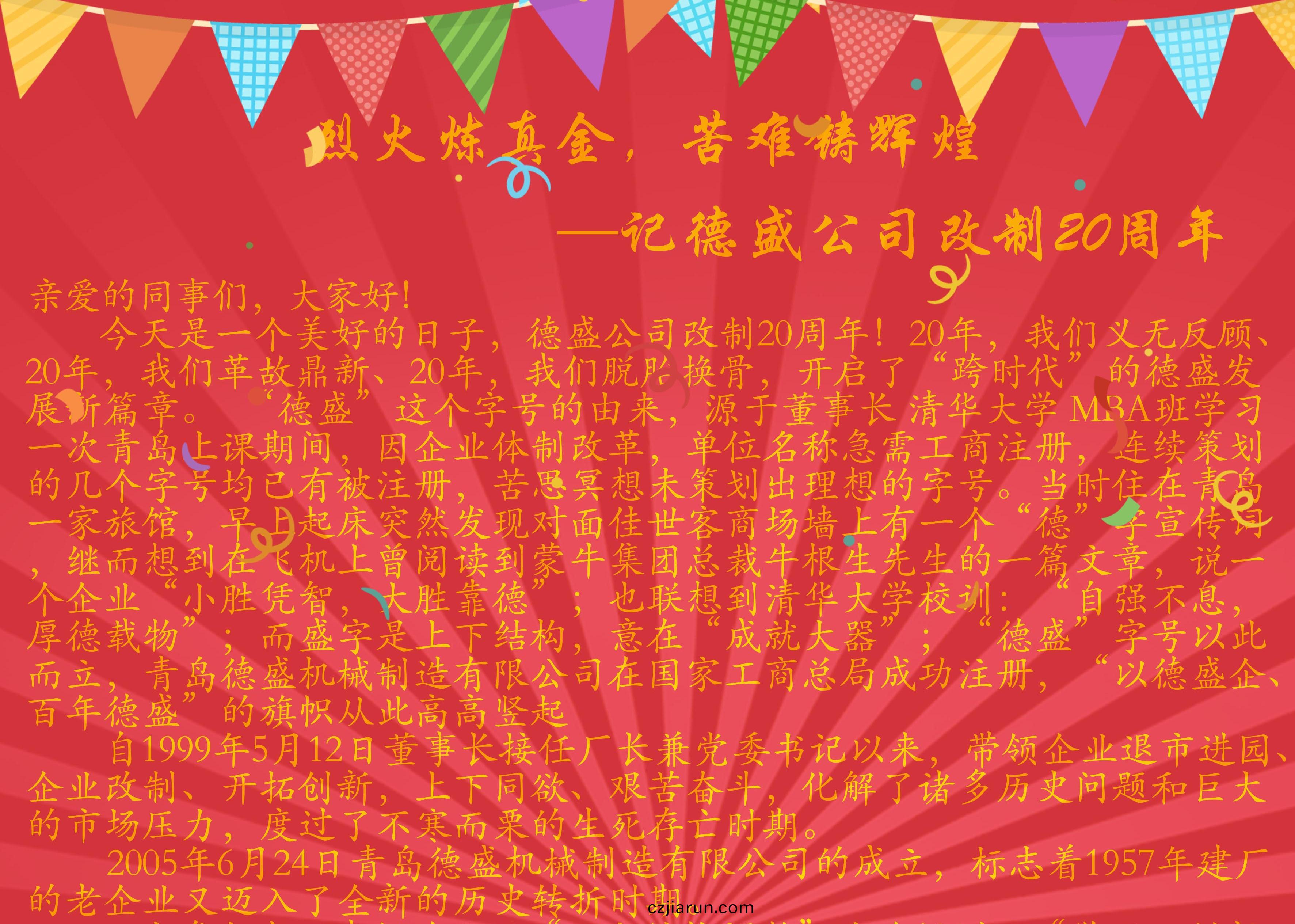 熱烈慶祝青島悳盛機械製造有限公司改製20週年!